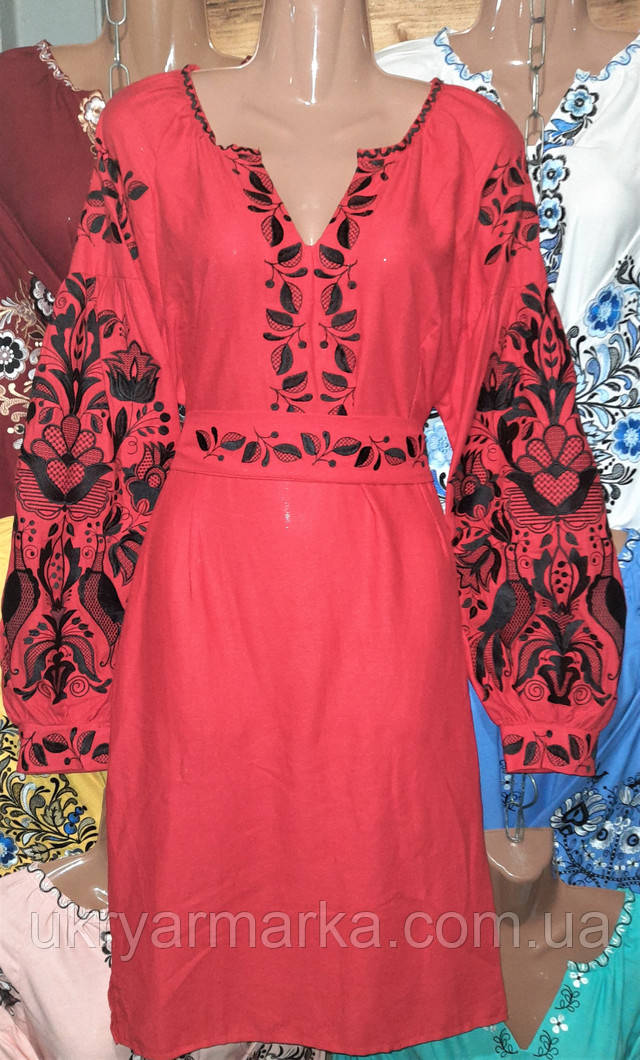 Цей палкий контраст на натуральній тканині стане чудовим завершенням Вашого унікального образу та підійде вишуканій жінці. Вишивка птахів в чорному кольорі на червоному льоні справді чудовий дует.
