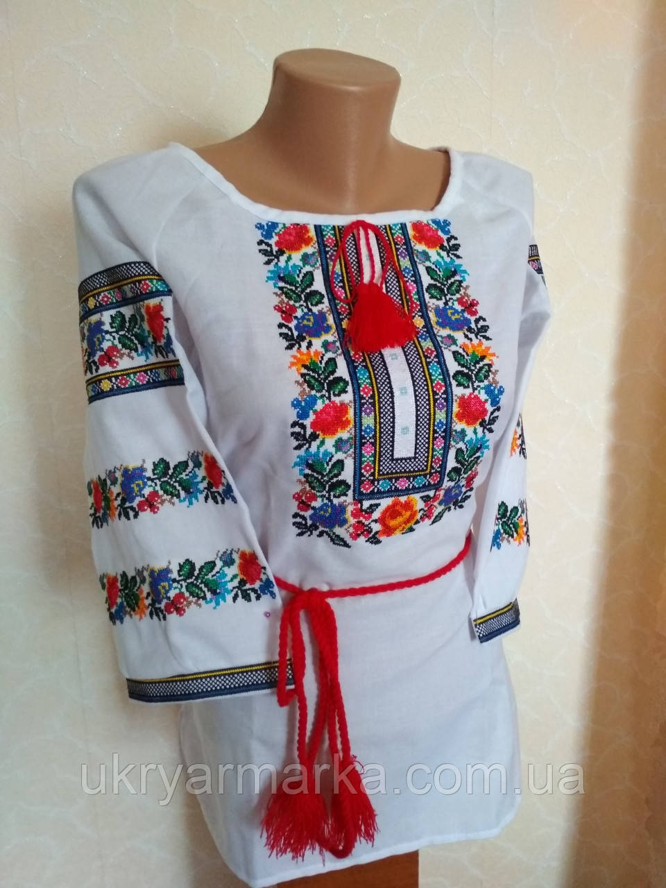 Довжина рукава-3/4 з вишитим манжетом. В доповнення - плетінь пояс, що підкреслить талію.