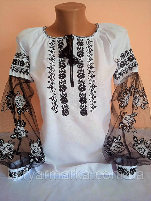 Тканина - домоткане плотно, машинна вишивка хрестиком, рукав в стилі бохо, вишитий на євросітці.