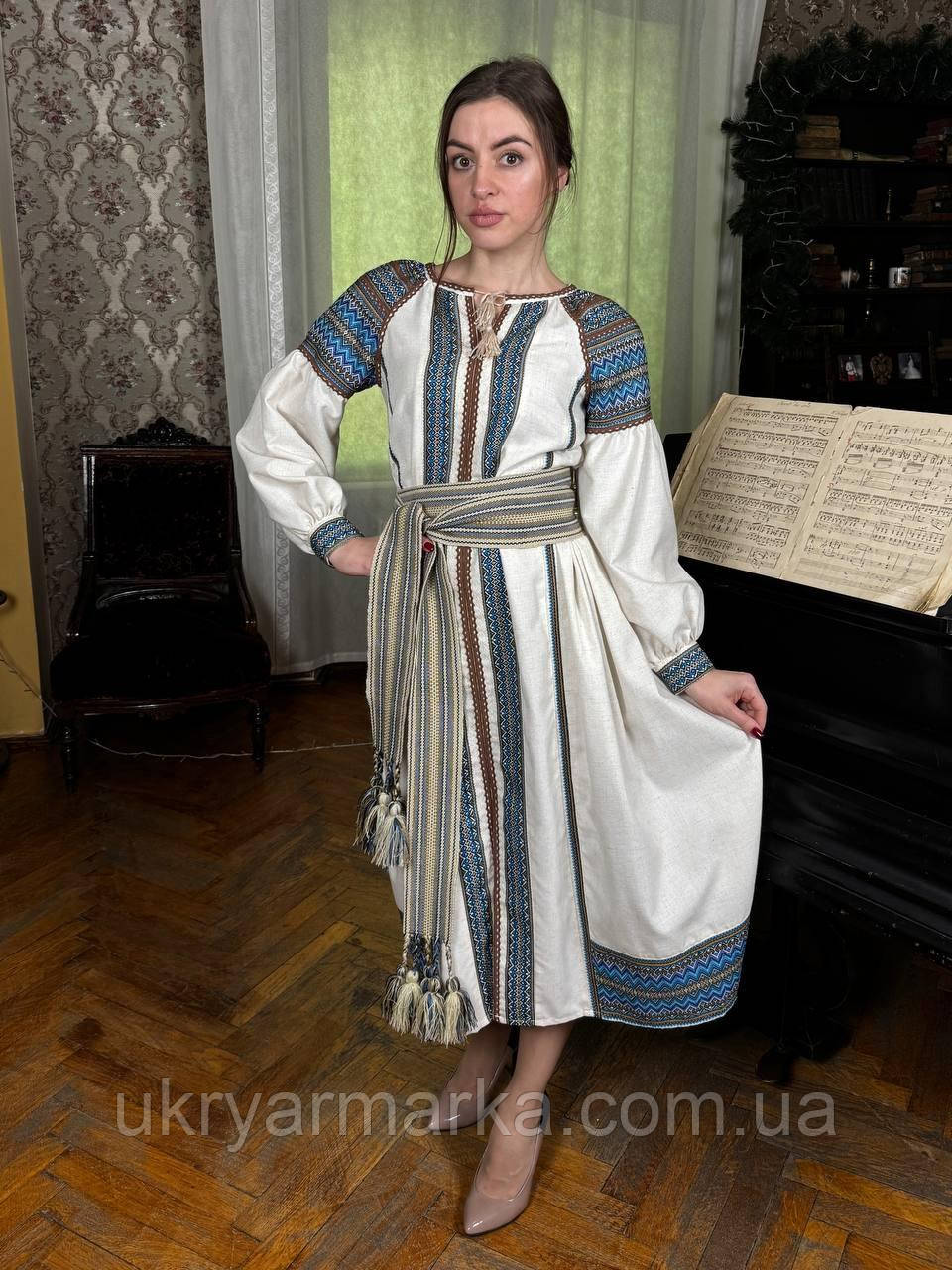Вишукане святкове жіноче плаття-вишиванка в оригінальній кольоровій гамі.