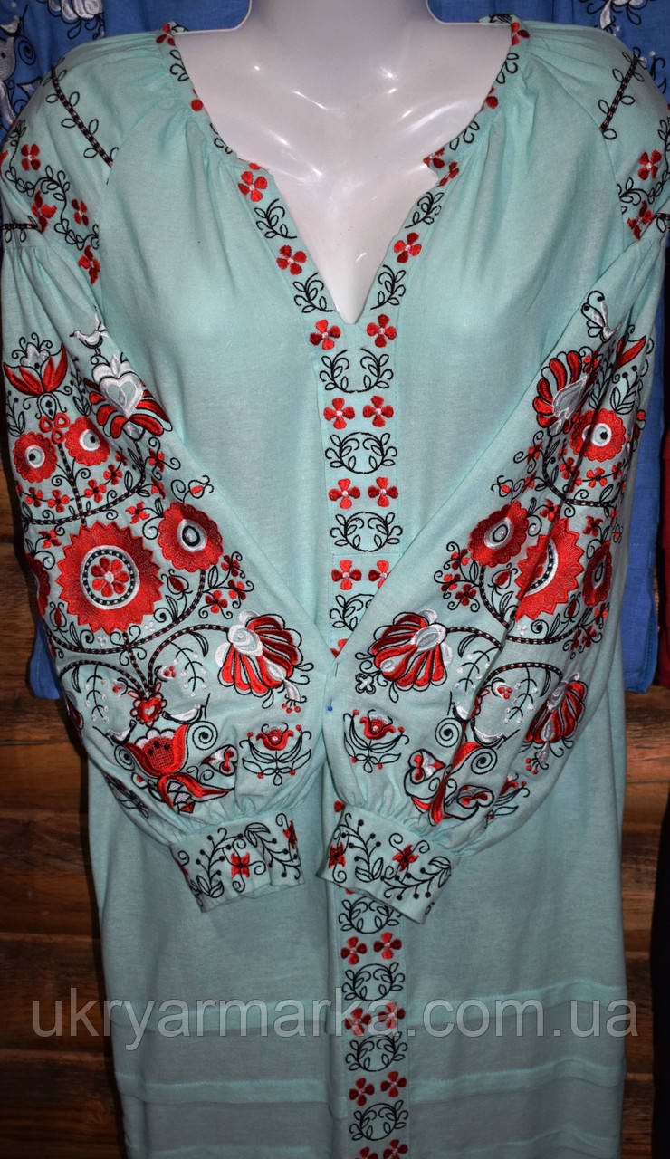 Лляне плаття прямого крою. Вишивка виконана в червоно-чорному кольорі. Контрастність і одночасно гармонія відтінків декору створюють карколомний образ для виходу в світ. Гарно виглядає з тоненьким крученим поясом. Можливий варіант на іншій тканині: габардин - 1250 грн. домоткане - 1350 грн.