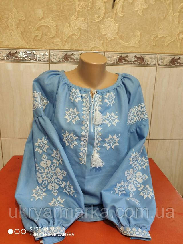 Стильна жіноча вишита сорочка стане чудовим доповненням Вашого образу. Тканина: льон або домоткане полотно і євросітка на рукавах. Машинна вишивка хрестиком.